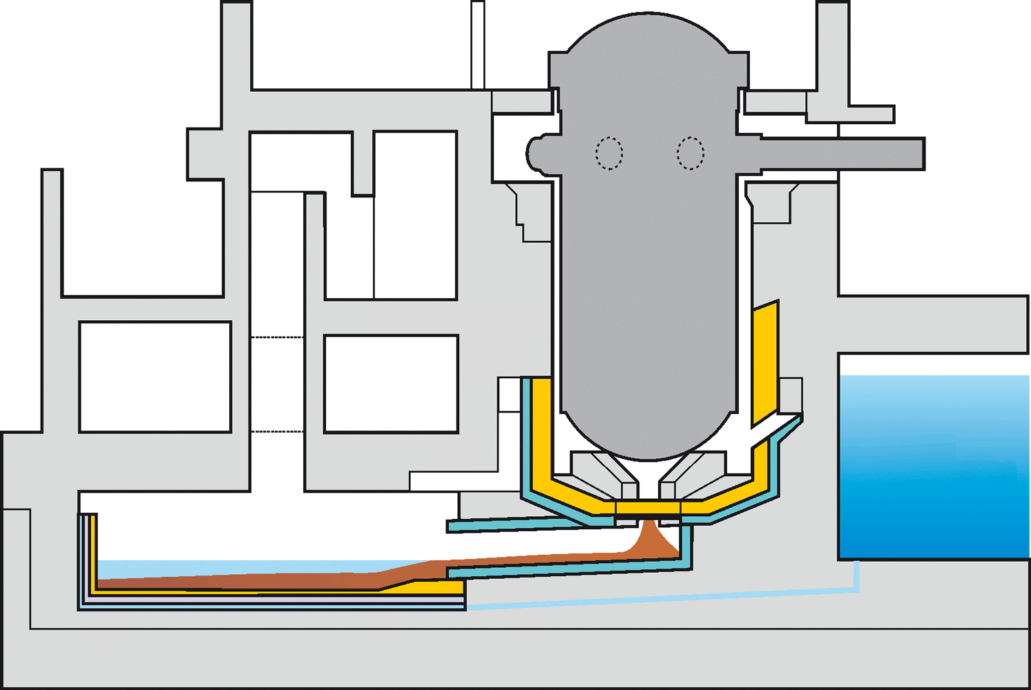 Vue latérale du récupérateur de corium d’un réacteur EPR